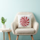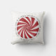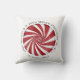 Simple and modern typography style pillow with "Ho! Ho! Ho! & a Very Merry Christmas to All," and your family name with a bold, watercolor red and white peppermint candy. Art painted by internationally licensed artist and designer, Audrey Jeanne Roberts, copyright.