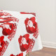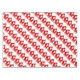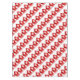 A bright red toned Father Christmas festive table cloth reads Ho Ho Ho Merry Christmas. Background colour can also be changed to suit the colours in your dining room, currently white. Ideal for festive parties, holiday tables and for those who like bright red colour. Art and design by Sarah Trett.