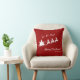 Add a fun seasonal touch to your home with this custom red and white throw pillow. Throw pillow features red background with white Merry Christmas greeting and Ho Ho Ho text, your family last name, and Santa Claus flying in his sleigh with reindeer.