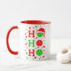 This pickleball Christmas mug makes a perfect gift for any pickleball lover. The design features a HO HO HO graphic where the letter O is replaced with a pickleball. Colours include bright green and red.