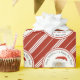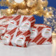 Spread the joy of Christmas with this custom made and personalised holiday gift wrapping paper featuring a very festive and cure Santa Claus singing HO HO HO.  Decorated with a holiday classic of red and white diagonal lines on red background, simulating peppermint candy stripes.