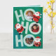 A roly poly little Santa laughs a big "HO HO HO" against a green background in this customisable Christmas card. Design allows for 3 photos, each framed inside an "O," and customising name inside.