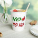 Cup with ho ho ho in 3D text and Santa's sleigh.