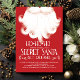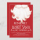 Cute Christmas secret santa gift exchange invitation featuring a santa's beard set on a red background embellished with hand lettered typography. Easy to personalise with your holiday party information.