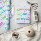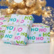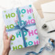 Complementing the cheerful text are delicate snowflakes in shades of light green, teal green, and light blue. These snowflakes bring an element of wintery charm, perfectly balanced with the fun and colourful “Ho Ho Ho” pattern. The blend of soft and vivid hues adds a dynamic and festive feel to your wrapped gifts, making them truly memorable.