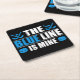 Hockey Blue Line coaster features blue pucks and hockey sticks with white and blue text that reads The Blue Line is Mine.