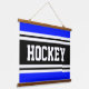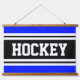 HOCKEY Bright Blue Black White Racing Stripes Hanging Tapestry