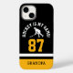 This iPhone Case-Mate is an amazing way to show your love of hockey and support your favourite sports team! It has a unique design with an black and yellow background, white text in a sporty font, and a silhouette of a hockey player. Plus, you can customise it with your own personal message, making it a perfect gift for any sports fan in your life. Whether you're looking for a special gift for Christmas, Father's Day, Mother's Day, a birthday, or any occasion, this case is sure to be a hit. It's also a great keepsake for your team to give away!