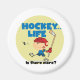 Hockey players and fans will love this cute cartoon hockey player with hockey stick and puck design on Hockey is There More T-shirts, hoodies, mugs, cards, stickers, magnets, and other hockey apparel and gifts.