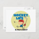 Hockey players and fans will love this cute cartoon hockey player with hockey stick and puck design on Hockey is There More T-shirts, hoodies, mugs, cards, stickers, magnets, and other hockey apparel and gifts.