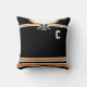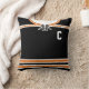 Easy to edit ice hockey or lacrosse custom jersey design throw pillow. Prominent colours of this jersey are black and orange, the white parts can be changed, just click 'CUSTOMIZE' to choose a different colour. Just use the boxes to the right of the image to insert your own choice of name and number. You can also add either a captains 'C' or alternate 'A' or the sweater number on the front too.