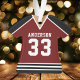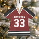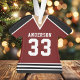 Hockey Jersey Sports Team Uniform Ornament. This hockey jersey ornament is perfect for anyone who plays school sports or loves watching sports. Personalise this custom design with your own team name and jersey number.