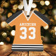 Hockey Jersey Sports Team Uniform Ornament. This hockey jersey ornament is perfect for anyone who plays school sports or loves watching sports. Personalise this custom design with your own team name and jersey number.