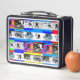 This is a standard metal lunchbox that appears to work just fine. We designed this box ourselves with an uploaded photo and custom text on the front and back. It looks absolutely beautiful except the front of the lunchbox is not centered like it shows in the photo. The print borders don't align with the inset flat part of the box where the preview photo online showed it perfectly centered in there. The back looks nice and centered though.