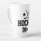 Hockey mum latte mug. Funny coffee cup for mother. Cute Birthday, Christmas or Mother's Day gift idea for sports mum / kid's coach. Crossed sticks and ice hockey puck with stars. Customisable drinkware for mum, dad, father and other family members.