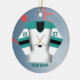Customise this Hockey Player Jersey Ornament with your number and team name on front and your name and number on back. Makes a great gift for your favourite hockey player or also makes a great team gift. Great for high school and intramural hockey league gifts!