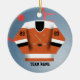Customise this Hockey Player Jersey Ornament with your number and team name on front and your name and number on back. Makes a great gift for your favourite hockey player or also makes a great team gift. Great for high school and intramural hockey league gifts!
