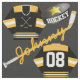 Hockey Player Jersey Puck and Stick Name Number Fabric