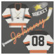 Hockey Player Jersey Puck and Stick Name Number Fabric