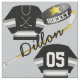 Hockey Player Jersey Puck and Stick Name Number Fabric