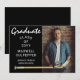 Hockey themed "Graduate" photo graduation announcement featuring a stick and puck beneath your favourite grad's photo. Original illustration and design by Holiday Hearts Designs (rights reserved) with template placeholder photo credit to Fabian Centeno via Unsplash.