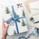 Hockey Santa and Pine Trees Christmas Wrapping Paper