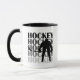 A black silhouette hockey player and text that reads "Hockey" on hockey T-shirts, tote bags, cards, stickers, mugs, and other hockey apparel and gifts, perfect for hockey players or hockey fans!