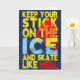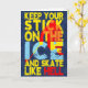 Custom made greetings cards and invitations with an original Game Face Gear design. Easy to edit templates, front text and inside text can be changed to whatever you want! Great for all your sports mad family and friends. A big n bold ice hockey design in yellow, red and blue, with the text Keep Your Stick On The Ice and Skate Like Hell