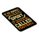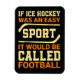 Hockey Versus Football magnet features text of yellow and gold and two hockey sticks. This hockey player magnet reads If Ice Hockey Was an Easy Sport It Would Be Called Football!
