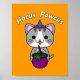 Hocus Pawcus - Gray Tabby Cat - White Writing Poster