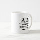 Brew up some magic this Halloween with this "It's just a bunch of Hocus Pocus" witch quote coffee mug. Decorative typography lettering is accented with spooky scrolls, twinkling stars, witch hat, black cat, and a witch's broomstick. Black design colour can be modified.