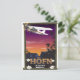Höfn Iceland Flight poster of the icelandic region featuring a small prop plane flying low and a backpack bag with the Icelandic National flag.