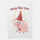 Hoggy New Year! Cute pig wearing a party hat, with a blowout amongst falling confetti