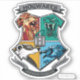 HARRY POTTER™ | The Hogwarts School Crest stylised with crosshatching, geometric shapes, and filigree.