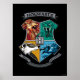HARRY POTTER™ | The Hogwarts School Crest stylized with crosshatching, geometric shapes, and filigree.