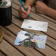 We got these postcards of places with all of our travels for people to send out notes at our wedding! .