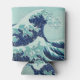 This is a drawing of blue, cyan and aquamarine extreme sea waves with foam and spray, based on the work of Katsushiki Hokusai (1760-1849).