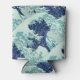 This is a pattern of blue, cyan and aquamarine sea extreme waves with foam and splashes, based on the work of Katsushika Hokusai (1760-1849).