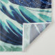 This is a drawing of blue, blue and aquamarine extreme sea waves with foam and spray, based on the work of Katsushiki Hokusai (1760-1849).