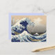 This postcard design features the Great Wave of Kanagawa by famed Japanese artist Hokusai. The image shows a massive blue ocean wave approaching small boats with Mt. Fuji in the background. The default colour of the reverse side is light blue. Change the colour is you wish by hitting the Customise button. Great for lovers of Japan, wood block prints, ocean and nautical designs and Asian art. This design is also available on stickers and can be transferred to any item in the Zazzle marketplace.