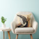 Hokusai Hawk pillow. Ukiyo-e animal painting from Edo period Japan. Katsushika Hokusai mastered multiple genres of Japanese painting and print making, including animal portraits. Hawk on a Ceremonial Stand depicts a regal black and white hawk crouching on a wooden ceremonial stand with gold trim and a red leather leash. The animal leans down and gazes at the viewer with its sharp black eye. A beautiful gift for fans of Hokusai, Ukiyo-e, Japanese art, and birds of prey.