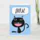 Hola, Hello Card in Spanish, Black Cat with Fish