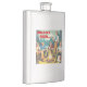 The product is a good size and came exactly as it was pictured. The lid is not attached to the flask, which could be dangerous on drunken nights... The print came out surprisingly well and looks very sharp. Would definitely recommend.