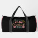 This black duffle bag features a humourous and relatable text design THIS" in a playful mix of teal, pink, and yellow fonts reads: "Hold On!! LET ME Overthink THIS" with small flower and star accents. This quirky design is perfect for those who tend to overanalyze situations. Edit colour of the bag caps and body in the Design tool to your favored colours.