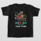 The t-shirt feels and looks great quality, a good thick cotton. It will be a little big for my son, but that means he will be able to wear it and not out grow it too soon. The print was as described on the order when personalised. True size, shape and colour T-shirt- thanks.