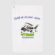 The golf towel exceeded my expectations! My husband actually approved of it! He liked the picture quality, thickness and overall usefulness of the golf towel I ordered to commemorate his lowest ever golf score. He liked it so well that I ordered 8 more towels with photos of his home golf course. Each one of the eight has the name of one of his golf group members. I will give them as party favors at my husband's 70th birthday party later this year. The different names were easy to add because the Zazzle template is so very easy to use. The colors were bright and authentic in all 9 of the towels that I made. The one of the 9 that I ordered has come out of the wash and line dry looking great.