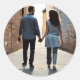 AI generated artwork depicting a couple walking down an urban alley of brick walls holding hands. generativecontent