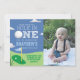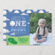 A colourful 'Hole in One' Golf themed first birthday invitation to help celebrate your little boy's first birthday. Colour palette features shades of green against a deep blue sky. Blue background colour is editable and can be changed to match your party theme. Add your own picture of your little one to really make this invitation shine!