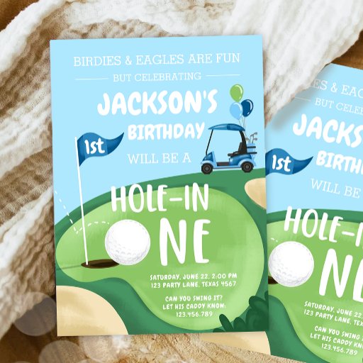 Hole In One Golf Boy First Birthday Par-Tee Invita Invitation