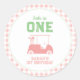 Hole in One Pink Check Girl First Birthday Classic Round Sticker